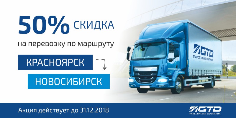 До 31 декабря действует специальное предложение: скидка 50% на перевозку по маршруту Красноярск — Новосибирск!